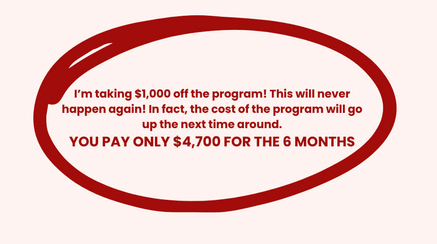What is more, if you were to work with me individually, my main high end Transformational Program would cost you $12,000 for 8 months.