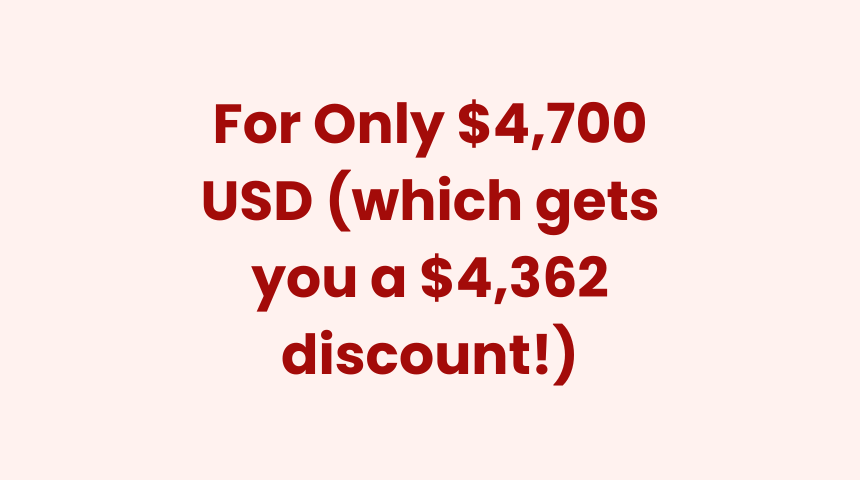 It's ALL yours for just $4,700.00 USD for the whole 6 months (or in the check out page you can finance it for easier monthly payments).
